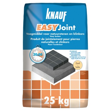 Het Easy Joint voegmiddel (25 kilogram) van Knauf is het ideale voegmiddel voor het voegen van natuurstenen en klinkers. De joint hard al na 20 minuten, is waterdoorlatend en geschikt voor voegbreedtes van 3 tot 25 millimeter. Verkrijgbaar in verschiilende kleuren, waaronder zand.
