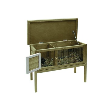Een houten konijnenhok met charme? Gevonden! Deze charmante rechthoek in taupekleur maakt alle konijntjes blij. Deze versie is 86 cm lang, 45 cm hoog en 70 cm breed. Het hok staat op stevige pootjes, zodat je viervoeter zelf geen last heeft van natte pootjes.