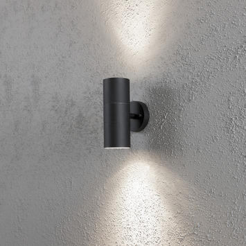 De Konstsmide buitenlamp Modena XL antraciet 2-lichts is een moderne buitenlamp die zowel naar boven als naar beneden schijnt. Je creëert sfeer en gezelligheid in je tuin doordat de buitenlamp een prachtig effect op de muur laat zien. Het armatuur is geschikt voor twee lampen met GU10 fittingen van maximaal 35 watt.