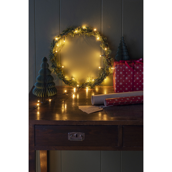 Breng de traditionele, warme kerstsfeer in je interieur met dit energiezuinige 100 lamps extra warmwitte LED verlichtingsnoer 6344-820 van het Zweedse premium merk Konstsmide. Het bijna 7 meter lange lichtsnoer is geschikt om bijvoorbeeld een binnenkerstboom mee te decoreren. Daarnaast zijn de decoratie- en verwerkingsmogelijkheden met dit snoer eindeloos. Denk eens aan het omwikkelen van een mand, verwerking in een glazen vaas of lantaarn of het omtrekken van een spiegel. Verwerking in of rond glas geeft vanwege de weerkaatsing een extra sfeervol decoratief lichteffect. Omdat het lichtsnoer een zogenaamd one string snoer is, eindigt het snoer bij het laatste lampje en is het dus geen lus. Dit zorgt er voor dat het snoer gemakkelijk te verwerken is. De kabelkleur is donkergroen en de onderlinge afstand tussen de lampjes is 7 centimeter.