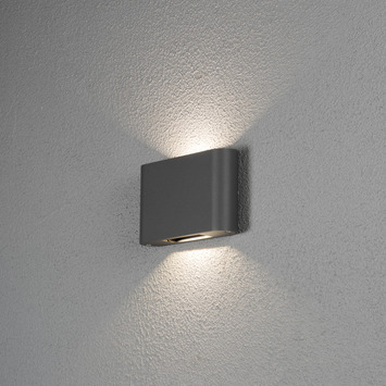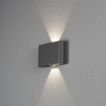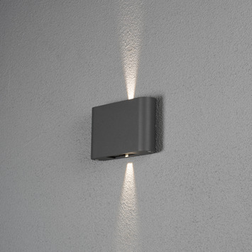 De Konstsmide buitenlamp Chieri powerled antraciet wandlamp is gemaakt van aluminium en gelakt in de kleur donkergrijs. Deze moderne buitenlamp geeft een sfeervolle uitstraling op de muur naast je deur of als accentverlichting in de tuin. Het warm witte licht zorgt voor een mooi effect dat zowel naar boven als naar onder schijnt. Met de geïntegreerde ledverlichting en de goede kwaliteit van het armatuur ben je verzekerd van een lange levensduur.