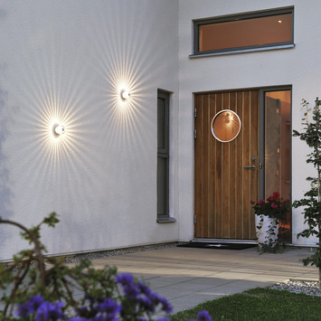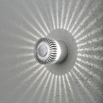 De Konstsmide buitenlamp Monza ø9 cm aluminium is een compact en modern LED armatuur met een fraaie lichtbundel in zonnestraalpatroon. Dit wandarmatuur is een visuele verrijking voor huis en tuin. De decoratieve wandlamp is te gebruiken bij voor of achterdeur en elders aan voor- achter of zijgevel maar ook in tuin of op het terras, tuinhuis of garage. Aan de erfafscheiding of langs looppaden.