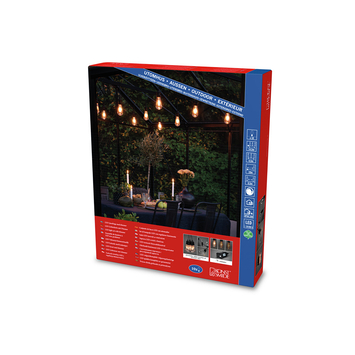 Maak het hele jaar door een geslaagd feestje van alle (buiten) activiteiten met dit stijlvolle en sfeervolle feestverlichtingsnoer met 4-traps dimmer van het Zweedse premium merk Konstsmide. Dit 10 lamps Edison en 4,5 m lange PowerLED lichtsnoer heeft een prachtige en krachtige extra warmwitte 1800K sfeervolle lichtkleur. Het veilige 24V snoer heeft een aansluitkabel van 10 meter lengte. De krachtige maar sfeervolle PowerLED lichtbronnen zijn energiezuinig maar toch krachtig. Mocht er een lichtbron uitvallen dan vervang je deze zeer eenvoudig. Het snoer is bestand tegen extreme Scandinavische weersomstandigheden en doorstaat moeiteloos hoge en lage termperaturen. De Edison LED lampen zijn zeer goed geïsoleerd tegen binnendringend water. De lengte van het aansluitsnoer bedraagt maar liefst 10 meter en elke bol is bovendien voorzien van een ophanghaakje. Het snoer werkt op een IP44 goedgekeurde 24V buitentrafo en is voorzien van een Europees veiligheidskeurmerk en daarmee volkomen veilig in gebruik. De LED lichtbronnen gaan ten minste 20.000 uur mee, dat wil zeggen minimaal 20 jaar bij dagelijks gebruik van 3 uur. De push in LED lichtbronnen zijn zeer kleurhomogeen en hebben minimaal verlies aan output gedurende de levensduur. Op de trafo van dit lichtsnoer is een ingebouwde dimmer verwerkt waarmee de output van het snoer op 100%, 75%, 50%, 25% kan worden ingeschakeld. De dimmer heeft een memoryfunctie dus na onderbreking van de stroomtoevoer hervat de dimmer met de laatst ingestelde dimmerstand. De dimmer is tevens de aan-/uitschakelaar. Konstsmide lichtsnoeren worden vervaardigd in een BSCI/SA8000 (Business Social Compliance Initiative) gecertificeerde productielocatie. Het snoer kan zowel binnen en buiten worden gebruikt en zorgt voor een gezellig, feestelijk tintje bij speciale gelegenheden als een barbecue, tuinfeest, WK/EK, examenfeest, verjaardag, jubileum, housewarming, huwelijksfeest, babyshower, kraamfeest en kan worden opgehangen in de tuin, terras, serre, partytent of aan balkon, pergola, parasol, voortent, luifel, erfafscheiding. In de winterperiode is dit snoer bij uitstek geschikt voor verlichting van bomen en struiken. Het aansluitsnoer is met 10 meter zeer ruim. De afstand tussen de lampen is 50 cm. Met dit lichtsnoer van Konstsmide kies je voor premium kwaliteit en optimale sfeer!