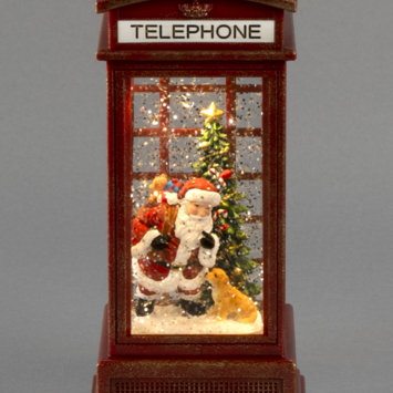 KonstSmide sneeuwlantaarn telefooncel waterspinner met LED verlichting 9 x 30 cm rood