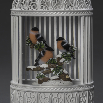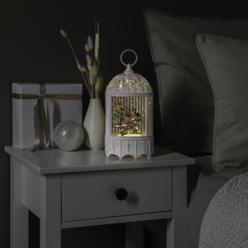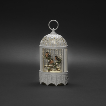 KonstSmide sneeuwlantaarn vogelkooi goudvink met LED verlichting 25x8 cm wit