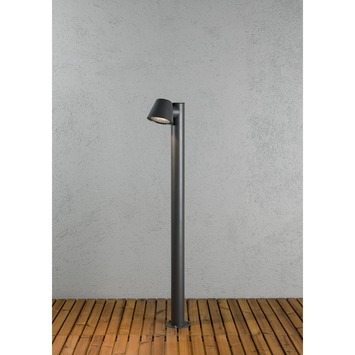 De Konstsmide Trieste staande lamp is gemaakt van aluminium gelakt in de kleur antraciet. Deze moderne buitenlamp geeft een sfeervolle verlichting op je tuinpad of oprit. Maar ook als verlichting bij een vijver of zwembad staat dit tuinpaaltje zeer fraai. De sokkel is eenvoudig vast te zetten en de fitting is geschikt voor een GU10 lichtbron.