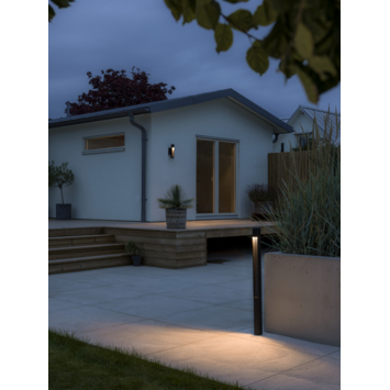 Mooie tubedesign 230V staande buitenlamp 97cm Udine 7537 met 12W geïntegreerde 3000K warmwitte PowerLED 230V van het Zweedse premium merk Konstsmide. Zeer fraai lichtpatroon rondom en sfeervol lichteffect op de grond. Gelakt aluminium in de kleur matzwart. Eenvoudig aan te sluiten op 230V lichtnet en geschikt voor energiezuinig sfeervol verlichten van je buitenruimte. De toegepaste LED driver van premium kwaliteit zorgt voor een stabiele output van de lichtbron en een lange levensduur van de LED verlichting. Het verbruik van het armatuur is met 12W en een output van 440 lumen zeer energiezuinig. De lichtbron hoeft tijdens de levensduur van de lamp niet te worden vervangen. Gebruik deze fraaie, moderne lamp buiten als decoratieve of veiligheidsverlichting langs je terras, oprij- of tuinpad, tuinhuisje, terras, erfafscheiding. Dit armatuur heeft een Europees veiligheidskeurmerk en een EMC keurmerk en een hoge IP-65 beschermingswaarde tegen vocht en stof. Dit houdt in dat de lamp geen storing veroorzaakt op andere elektronische apparatuur en draadloze netwerken als WiFi en Bluetooth. Voor langdurig behoud van dit armatuur is beperkt onderhoud nodig. Eenmaal reinigen per kwartaal met lauwwarm water met (auto)shampoo.