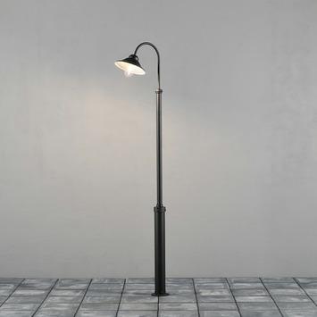 De Konstsmide lantaarn Vega zwart 240cm is een moderne buitenlamp die jouw buitenruimte helemaal compleet maakt. Het matzwart gelakte aluminium geeft deze lamp een moderne maar toch ook sfeervolle uitstraling. De lamp geeft een mooie ronde lichtbundel gericht naar beneden. Het armatuur is geschikt voor een E27 (grote) fitting met een maximaal wattage van 60 watt en is geschikt voor LED-verlichting wat deze lamp direct energiezuinig maakt. Met een IP-waarde van 23 is deze lamp regenwaterdicht. De Vega heeft een hoogte van 2,40 meter en wordt geleverd exclusief lichtbron.
