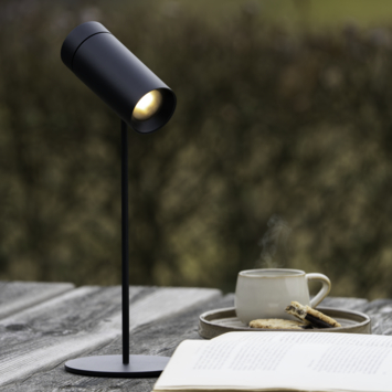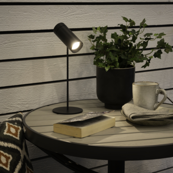 De geïntegreerde LED van 1,8W is dimbaar en biedt twee lichttemperaturen: 2200K voor een warme sfeer of 3000K voor een helderder effect. Opladen gaat via USB, waarna je de lamp overal kunt gebruiken. De lamp heeft een hoogte van 30 cm, breedte van 11 cm en een spotkoplengte van 11,5 cm. Dankzij de IP54-classificatie is hij beschermd tegen stof en spatwater, geschikt voor zowel binnen als buiten.