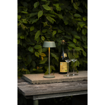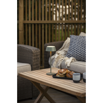 De Menton tafellamp heeft een hoogte van 27 cm en een diameter van 13 cm. Dankzij de IP54-classificatie is de lamp beschermd tegen stof en spatwater en geschikt voor binnen- en buitengebruik. Het groen-grijze design geeft een frisse en natuurlijke uitstraling aan elke ruimte.