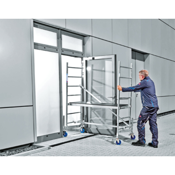 De Krause steiger ClimTec van aluminium kun je snel en zonder gereedschap opbouwen dankzij de klemverbindingen en de insteekbare systeemonderdelen van het frame. Met behulp van de als accessoire verkrijgbare Krause wielenset ClimTec kun je de steiger in opgebouwde staat probleemloos door een deur schuiven. Dit maakt hem ideaal voor de interieurbouw. De V-vormige dwarsliggers bieden optimale veiligheid, omdat het vloeroppervlak zowel in de lengte als in de breedte wordt vergroot. Je kunt veilig de steiger op klimmen dankzij de geprofileerde, anti-slip sporten. Met ClimTec verlengstukken kun je de aluminium steiger ClimTec uitbreiden tot een werkhoogte van 7 m.