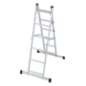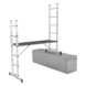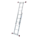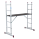 6 treden enkele ladder: je kunt de beide 6 treden ladders (de zijsteunen van de steiger) ook zelfstandig als 6 treden enkele ladder gebruiken. Door de stabiliteitsbalk aan de onderkant staat de ladder dan ook erg stabiel. De hoogte van de ladder is dan 160 cm waardoor je een maximale werkhoogte kunt bereiken van ongeveer 260 cm.