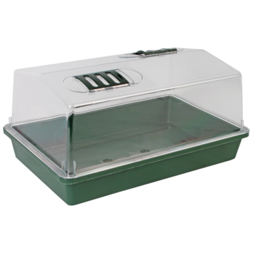 Een kweekkas met overkapping is geschikt voor het ontkiemen van zaden, door de overkapping ontstaat er in de bak een kaseffect. Met de ventilatieschuifje kan je de controle houden over de temperatuur.