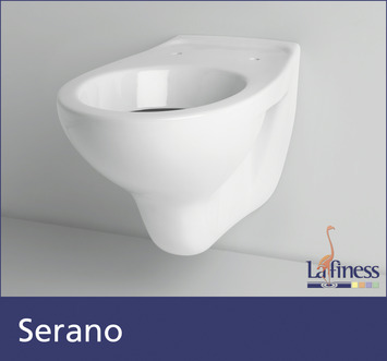 De Serano ophang-wc van Lafiness heeft een elegant design uit wit porselein. Bevestig aan de muur om ruimte uit te sparen en stijl te winnen. En de zitting? Die is niet inbegrepen, dus die kan je helemaal zelf kiezen ...