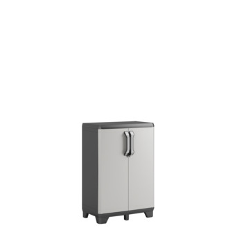 Prima kast voor in de kelder. Ben er blij mee. De twee schappen zijn handiger dan eentje, dat deed me kiezen voor deze kast. Er past een Curver-box in de onderste ruimte en de deuren gaan dan net dicht. Tenzij je de kast perfect waterpas zet, gaan de deuren nogal moeilijk dicht, het is natuurlijk plastiek en dat is niet zo stevig als hout of metaal. Ik geef er een goeie mep tegen en dan zijn ze dicht. Ik stoor me er niet aan