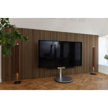Met de lattenwand creëer je eenvoudig een Scandinavisch stijlvol design in jouw huis. Met behulp van de kant en klare panelen kun je in een korte tijd een wand dichtzetten in woonkamer, keuken of slaapkamer en krijg je een warme uitstraling. Het paneel is 244 cm lang en 60,5 cm breed. De vilten achterwand, die gemaakt is van duurzame materialen zoals PET flessen,, die gemaakt is van duurzame materialen zoals PET flessen, is zodanig afgewerkt dat er direct met een nieuw paneel verder gewerkt kan worden en de juiste afstand tussen de latten behouden blijft. Op het vilt zitten zwart gekleurde MDF latten die zijn voorzien van echt hout fineer. Iedere afzonderlijke lat is dus uniek. De lattenwand is in meerdere decoren beschikbaar. Het is belangrijk om bij het monteren van de panelen 2mm afstand te houden tussen de verschillende panelen. De vilten onderrug kan namelijk vanwege temperatuurverschillen lichtelijk uitzetten.