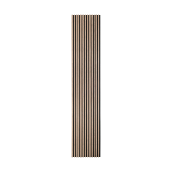 Het paneel is 260 cm lang en 52,6 cm breed. De houten latten zijn 2,5 cm breed per stuk en de ruimte tussen de latten is 1,5 cm. De vilten achterwand, die gemaakt is van materialen zoals PET flessen, is zodanig afgewerkt dat er direct met een nieuw paneel verder gewerkt kan worden en de juiste afstand tussen de latten behouden blijft. Op het vilt zitten zwart gekleurde MDF latten die zijn voorzien van echt hout fineer. Iedere afzonderlijke lat is dus uniek. De lattenwand is in twee decors beschikbaar: vergrijsd walnoot en licht eiken.