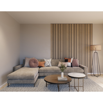 Ontdek Decowall Acoustic Blend: de speelse lattenwand met akoestische eigenschappen. Met zijn combinatie van verschillende breedtes van de latten transformeert Decowall Acoustic Blend elke muur tot een luxueuze blikvanger die direct de aandacht trekt. Of je nu een Scandinavisch, modern, klassiek of Japandi interieur hebt, deze wandbekleding past naadloos in elke stijl en verrijkt je ruimte.