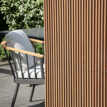 Deze roomdivider voor buiten is een stijlvolle lattenwand van hoogwaardig onbehandeld hardhout om de buitenruimte mee te verrijken. Dankzij deze divider kan jij jouw tuin indelen zoals je wilt. De decoratieve lattenwand is niet alleen te gebruiken als afscheiding in de tuin, maar ook om meer privacy te krijgen of gezellige hoekjes te creëren. Daarnaast is het in te zetten als ombouw voor de afval container of warmtepomp. Een veelzijdig product dat voorzien is van een FSC-keurmerk!