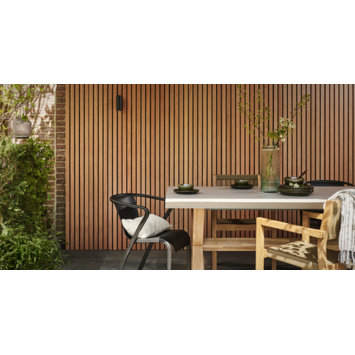 Geef jouw buitenmuur, terrasoverkapping, balkon of gevel een frisse uitstraling met deze buitenlattenwand van 236 × 55 cm en 3,4 cm dik. Gemaakt van FSC-gecertificeerd Indonesisch hardhout (keruing) is het een stevige keuze. De latten zijn geschaafd met afgeronde lange zijdes, waardoor het geheel een verzorgde uitstraling krijgt.