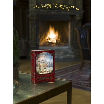 LED Boek met Kerstman sneeuwtafereel, antiekrood, 19.3x13.5cm, 1L, warmwit, watergevulde lantaarn, on/off/5u timer, op USB kabel of batterij, 3x AA, voor binnen