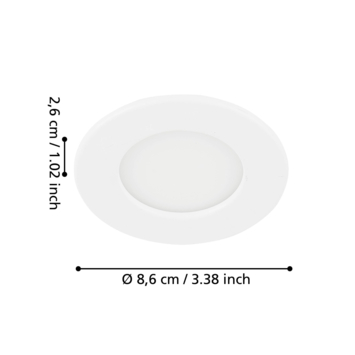Fueva 5 is een ronde, witte inbouwspot van het merk EGLO. Inbouwspots zijn een hele slimme keuze in bijna iedere ruimte in huis, bijvoorbeeld onder de keukenkastjes, in de woonkamer of in de badkamer. De lamp heeft een diameter van 8,6 cm en een zaagdiameter van 7,5 cm. Een warmwitte 2,7 W LED is inbegrepen. LED-lampen hebben niet alleen een veel langere levensduur, ze verbruiken ook minder energie.
