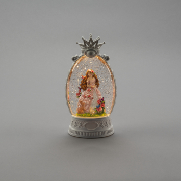 LED Sneeuwlantaarn waterspinner met Prinses met bloemen tafereel, antiekwit, 26.5x13.5cm, 1L warmwit, on/off/5u timer, op batterij 3x AAA (excl) of 1.8m USB aansluitsnoer, voor binnen