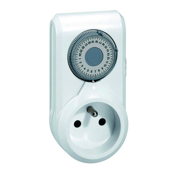 De mechanische tijdschakelklok van Legrand is schakelbaar per 15 minuten. Beschikt over aan- en uitschakelaar en een programma per dag. Ideaal om je verlichting te timen, bijvoorbeeld in je gang om inbrekers af te schrikken.