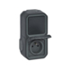 Legrand Plexo opbouw wisselschakelaar + opbouwstopcontact 2-polig met aarding verticaal spuitwaterdicht grijs
