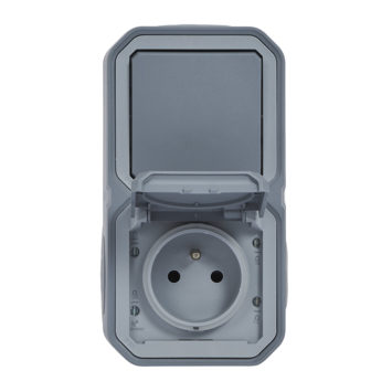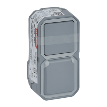 De Plexo opbouwschakelaar met stopcontact en aarding van Legrand is gemaakt uit kunststof in de kleur grijs en heeft een stevig, stof- en spuitwaterdicht ontwerp. Combineer met de andere Plexo producten voor 'n mooi geheel.