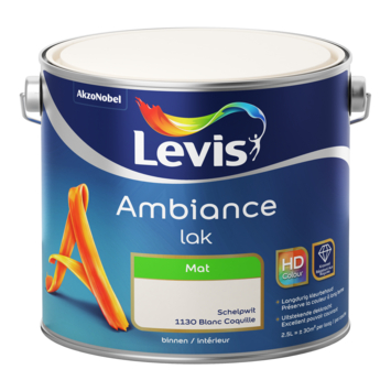 Levis Ambiance lak mat bestaat uit een reeks hoogkwalitatieve matte lakken op waterbasis. Door het bestanddeel polyurethaan is deze lak extreem krasvast. Daarnaast is deze lak in de kleur schelpwit (2,5 liter) ook extra dekkend, sneldrogend en geur arm. Tot slot behoud de Levis Ambiance lak mat zijn kleur en is hij goed afwasbaar.