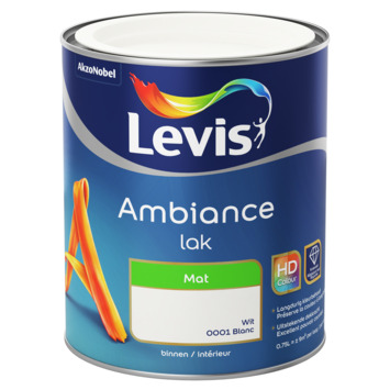 Levis Ambiance lak mat bestaat uit een reeks hoogkwalitatieve matte lakken op waterbasis. Door het bestanddeel polyurethaan is deze lak extreem krasvast. Daarnaast is deze lak in de kleur wit (750 ml) ook extra dekkend, sneldrogend en geur arm. Tot slot behoud de Levis Ambiance lak mat zijn kleur en is hij goed afwasbaar.