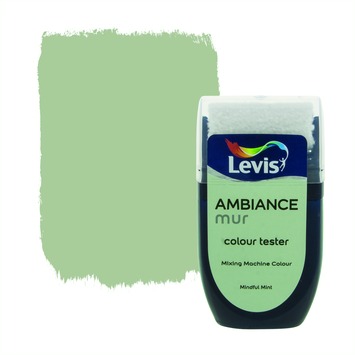 Test de verf die je wil gebruiken in je (nieuwe) huis met deze Levis Ambiance tester: een slimme manier om verschillende kleuren verf te testen, vooraleer je vele potten in huis haalt. Levis Ambiance Mur is een matte acrylaatverf van hoge kwaliteit, geschikt voor binnenmuren en plafonds. Deze muurverf heeft een hoge dekkracht, is gemakkelijk verwerkbaar, droogt zeer snel en bevat geen geur. Bovendien bevat de verf geen solventen en beschikt het over een ecolabel. De verf is verkrijgbaar in verschillende hedendaagse kleuren, zoals mindful mint (30 ml).
