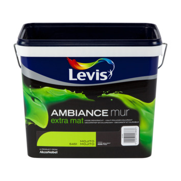 Levis Ambiance Mur is een extra matte acrylaatverf van hoge kwaliteit en geschikt voor binnenmuren en plafonds. Deze muurverf heeft een hoge dekkracht, is gemakkelijk verwerkbaar, droogt zeer snel en bevat geen geur. Bovendien heeft deze Levis verf geen solventen en beschikt het over het ecolabel. Deze verf is verkrijgbaar in verschillende hedendaagse kant-en-klare kleuren en ook in de glansgraad zijdeglans.