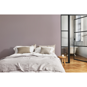 Aanvankelijk dacht ik een aan mooie roze tint bij kersenbloesem, zo leek het ook op de pot. Uiteindelijk was het al eerder lila op de muur wanneer het nat was, maar eens gedroogd was het gewoonweg paars. De verf is gemakkelijk aan te brengen, maar twee lagen zijn nodig voor een mooi resultaat.