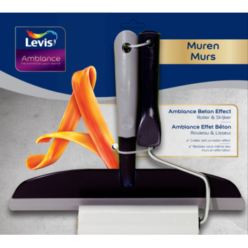 De Levis Ambiance roller & strijker is speciaal ontwikkeld voor verf op waterbasis en gebruik met Ambiance Beton Effect. De roller is 15 centimeter breed en dus geschikt voor middelgrote oppervlakken zoals muren of betonnen wanden. Je gebruikt dit gereedschap op ondergronden van steen of andere minerale materialen. De haren van de roller zijn synthetisch, waardoor je de verf goed kunt verdelen en de structuur mooi zichtbaar blijft. Met de roller breng je de verf aan, daarna maak je de afwerking glad met de bijhorende strijker. Zo creëer je zelf een betoneffect met een egaal eindresultaat.