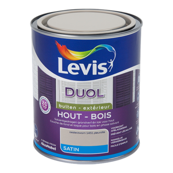 Levis Duol is een zijdeglanzende solventgedragen lak speciaal voor hout. Daarnaast is het een grondverf en eindlaag in één waardoor je meteen bespaart. De verf bladdert niet af, is weerbestendig en zeer goed afwasbaar. Tevens is de verf gemakkelijk aan te brengen en heeft het een hoge dekkracht, ook in de kanten.