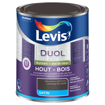 Levis Duol is een zijdeglanzende solventgedragen lak speciaal voor hout. Daarnaast is het een grondverf en eindlaag in één waardoor je meteen bespaart. De verf bladdert niet af, is weerbestendig en zeer goed afwasbaar. Tevens is de verf gemakkelijk aan te brengen en heeft het een hoge dekkracht, ook in de kanten.