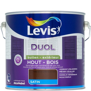 Levis Duol is een zijdeglanzende solventgedragen lak speciaal voor hout. Daarnaast is het een grondverf en eindlaag in één waardoor je meteen bespaart. De verf bladdert niet af, is weerbestendig en zeer goed afwasbaar. Tevens is de verf gemakkelijk aan te brengen en heeft het een hoge dekkracht, ook in de kanten.