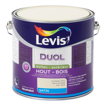 Levis Duol is een zijdeglanzende solventgedragen lak speciaal voor hout. Daarnaast is het een grondverf en eindlaag in één waardoor je meteen bespaart. De verf bladdert niet af, is weerbestendig en zeer goed afwasbaar. Tevens is de verf gemakkelijk aan te brengen en heeft het een hoge dekkracht, ook in de kanten.
