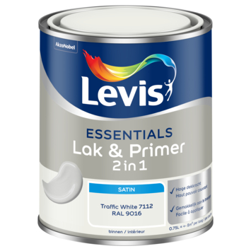 Levis Essentials Lak & Primer 2 in 1 biedt een gemakkelijke en snelle oplossing voor jouw schilderwerken. Geschikt voor houten ondergronden binnen. Bij de meeste houtsoorten heb je geen aparte primer nodig, aangezien Levis Essentials Lak & Primer 2 in 1 een geïntegreerde primer heeft. Hoge dekkracht. De smeuïge consistentie van deze lak zorgt voor een gelijkmatige dekking en is gemakkelijk aan te brengen.