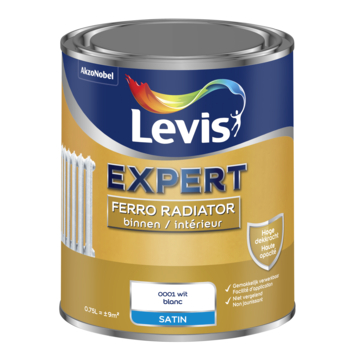Met Levis Ferro radiatorverf haal je een zijdeglanzende afwerkingslak, speciaal voor radiatoren en verwarmingsbuizen in huis. De verf is geschikt voor ijzer en gietijzer die reeds voorzien zijn van een antiroest grondlaag en voor oude lagen die nog in goede staat zijn. De verf is goed dekkend, is bestand tegen aflopers en is daarnaast gemakkelijk aan te brengen. Bovendien is de verf niet vergelend.