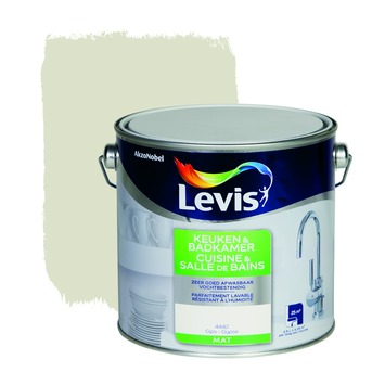 De keuken- & badkamerverf van Levis is zeer goed afwasbaar en vochtbestendig. Maak je keuze uit verschillende kleuren en formaten zoals deze matte verf in de kleur gips (2,5 liter).