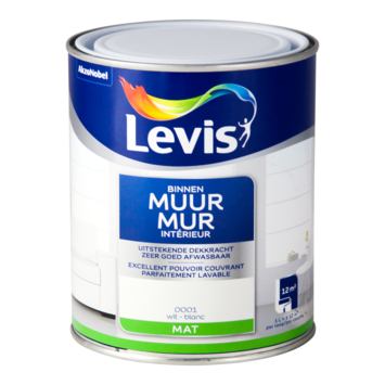 Levis Muur Mat in de kleur wit is een op watergedragen muurverf geschikt voor binnen. Deze verf is te gebruiken op verschillende soorten ondergronden zoals baksteen, behangpapier, pleisterwerk enzovoort. De verflaag heeft een hoge dekkracht en een matte finish. Bovendien is deze muurverf sneldrogend, goed afwasbaar en spat ze niet.