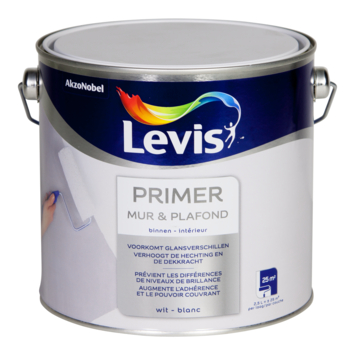 De muur- en plafondprimer van Levis is een isolerende grondverf voor binnen, te gebruiken op binnenmuren en plafonds in pleister, gipskarton en glasvezel. De primer zorgt ervoor dat glansverschillen in de eindlaag worden vermeden.