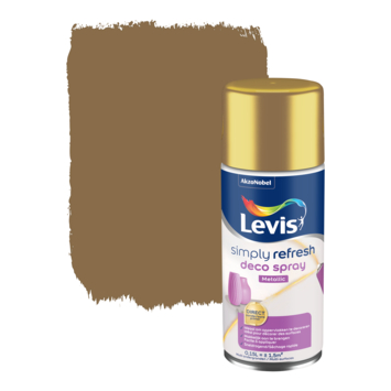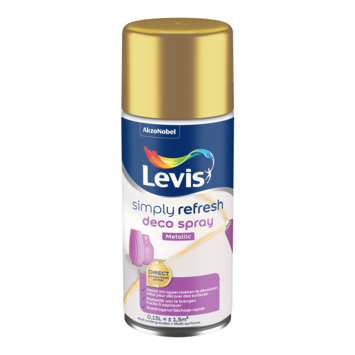 Een nieuw interieur, meubel of accessoire? Met de nieuwe Levis Simply Refresh jaag je zo een frisse wind door je huis. Zonder al te veel moeite, want dankzij de unieke technologie achter deze 'Simply Refresh' kan je verven zonder oude verflagen te verwijderen én zonder primer. Deze renovatieverf van Levis zorgt daarenboven voor een perfecte hechting en dekking op hout, metaal en glas. Je interieur is zonder moeite herboren! Nu nog je kleur kiezen ... Wat dacht je van deze decospray in de kleur metaal goud (150 ml)?