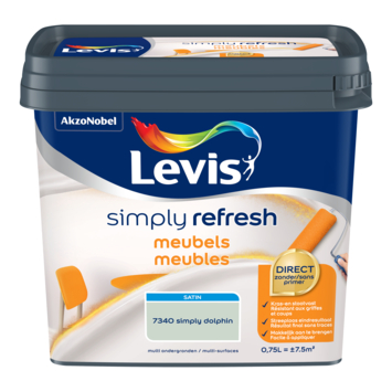 Levis Simply Refresh meubelverf dolphine 750 ml is een kwalitatieve verf op waterbasis. De meubelverf is toepasbaar zonder primer op verschillende ondergronden.