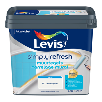 Levis Simply Refresh tegelverf satijn mist 750 ml is een kwalitatieve satijn verf op waterbasis die toepasbaar is zonder primer.