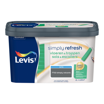 Levis Simply Refresh vloeren & trappen satijn volcanic 2 L is een kwalitatieve verf op waterbasis, voor vloeren en trappen met normale belasting. De vloer & trappen verf is slijtvast, droogt snel en is toepasbaar zonder primer op hout, laminaat, beton en tegels.