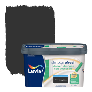 Levis Simply Refresh vloeren & trappen satijn zwart 2 L is een kwalitatieve verf op waterbasis, voor vloeren en trappen met normale belasting. De vloer & trappen verf is slijtvast, droogt snel en is toepasbaar zonder primer op hout, laminaat, beton en tegels.
